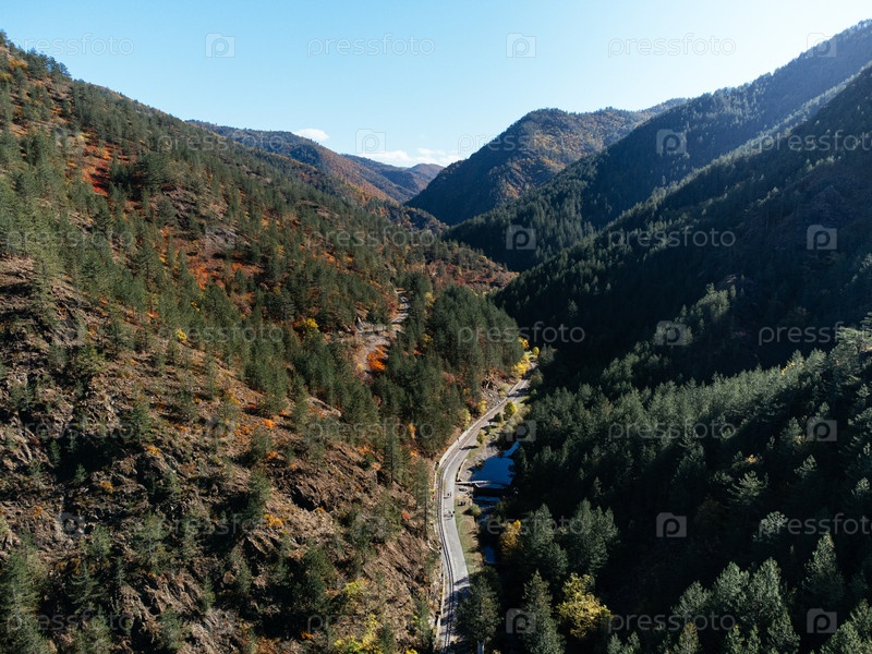Вид с воздуха на горы Тара в Сербии с осенним лесом, сельской долиной и утренним туманом