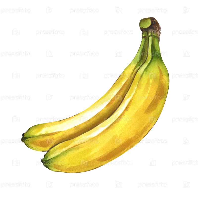 Группа двух спелых бананов на изолированном фоне. акварельная иллюстрация реалистичных желтых фруктов. ботанический клипарт в натуральных цветах для дизайна тематики здоровой пищи и детского питания
