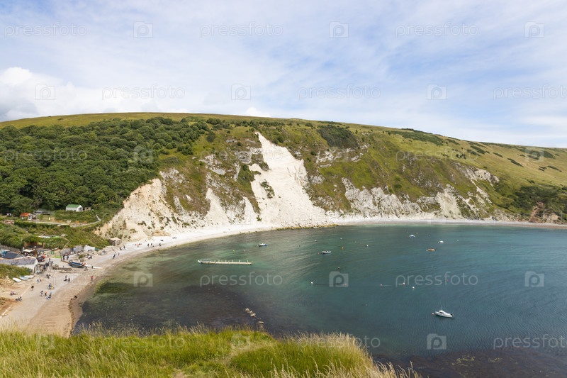 Панорамный вид на залив Лулуорт на Юрском побережье, Великобритания