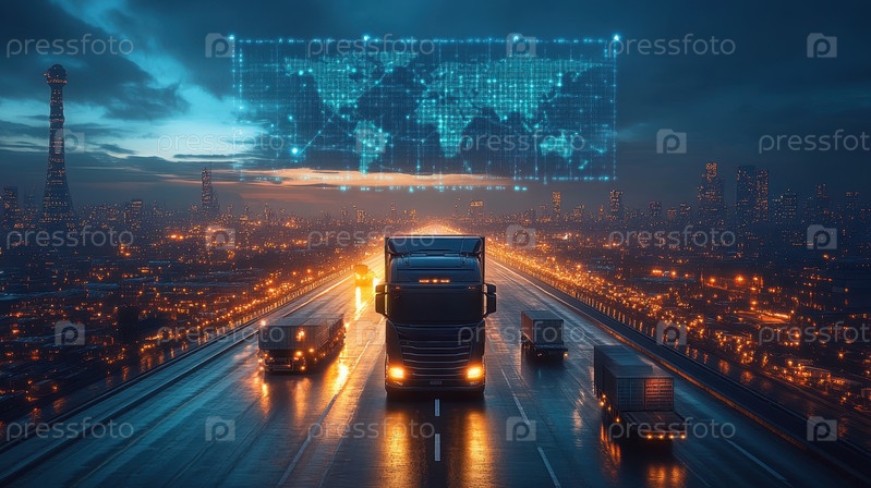 Футуристический грузовик на умной шоссе ночью