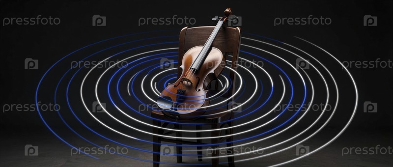 Звуковые волны, исходящие из скрипки, опирающейся на стул