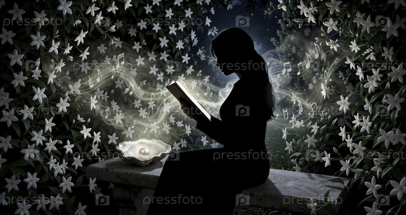Спокойный силуэт чтения в цветочной гармонии