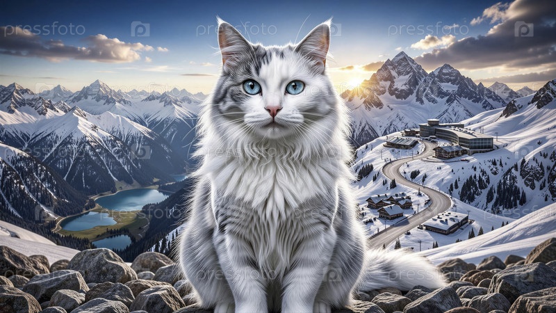 Величественный горный кот в стране зимних чудес