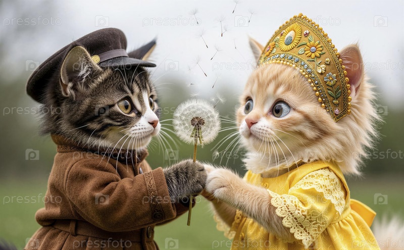 Любящая кошачая пара держит семена лепестки