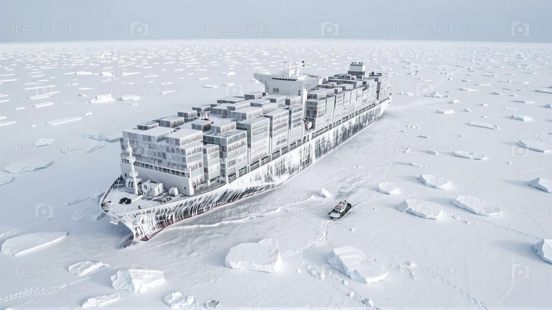 Грузовой корабль застрял в арктическом льду