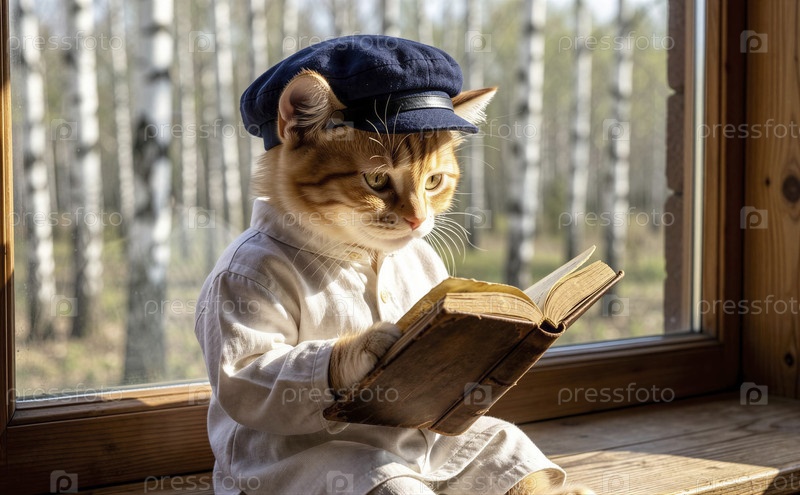 Котенок читает книгу