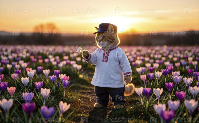 Весенний кот в поле цветов