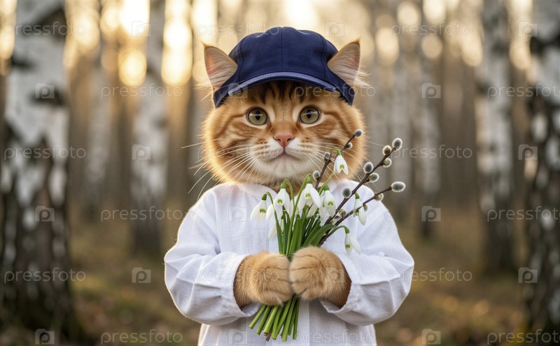 Кот в бейсбольной шапке, держащий снежинки