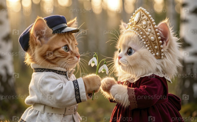 Котята в национальном костюме с цветами