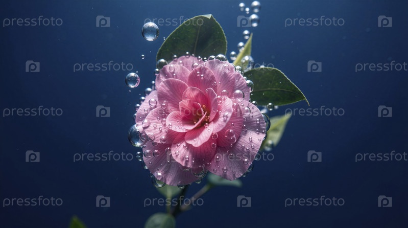 Эфирный розовый цветок под водой с пузырями