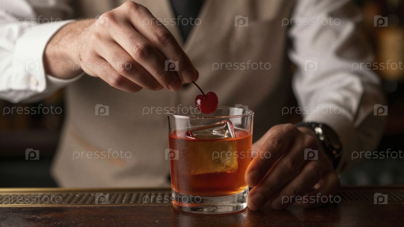 Изготовление классического Манхэттена с вишневым украшением