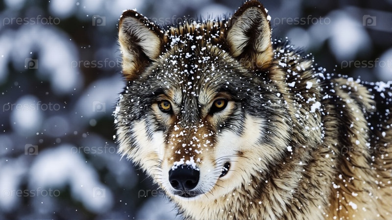 Зимний волк в снегу