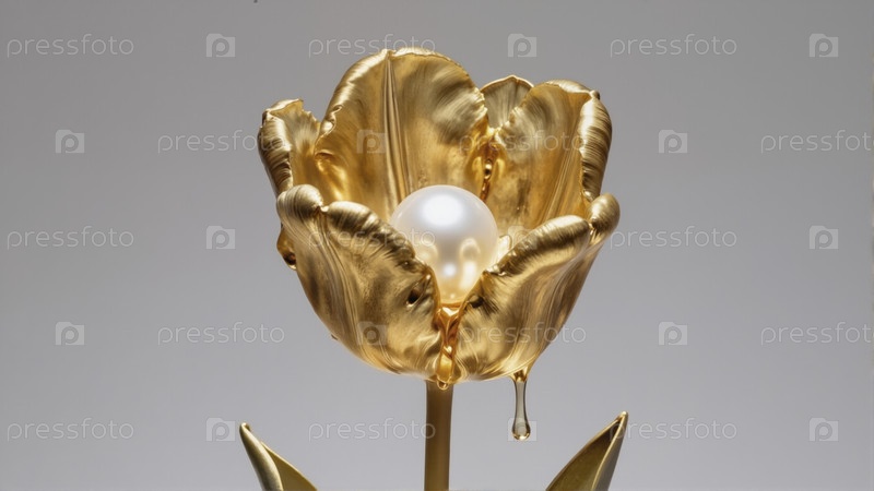 Золотой тюльпан, держащий жемчуг, символизирующий роскошь и элегантность
