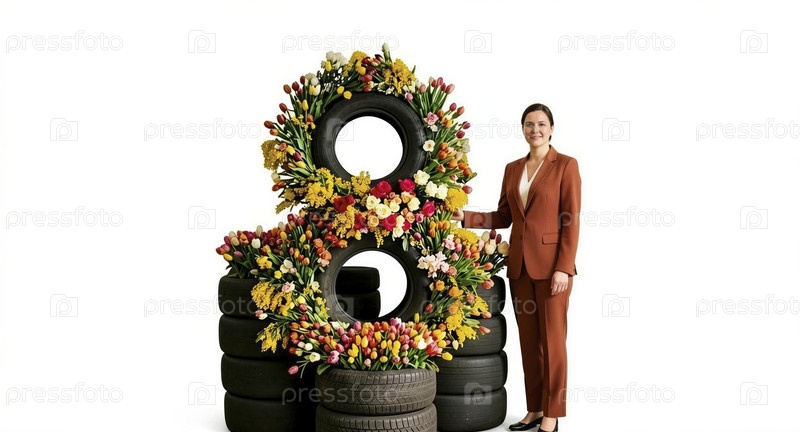 Переработанные резиновые шины цветут в красоте