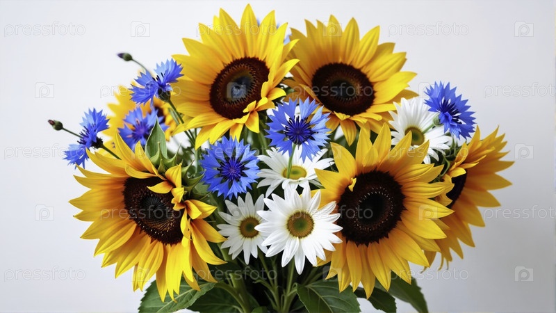 Веселый букет подсолнечников и ромашек