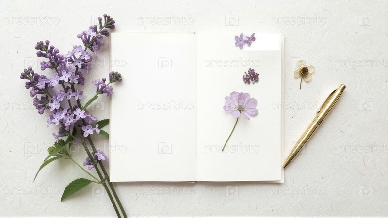 Эстетический блокнот с лиловым букетом и ручкой