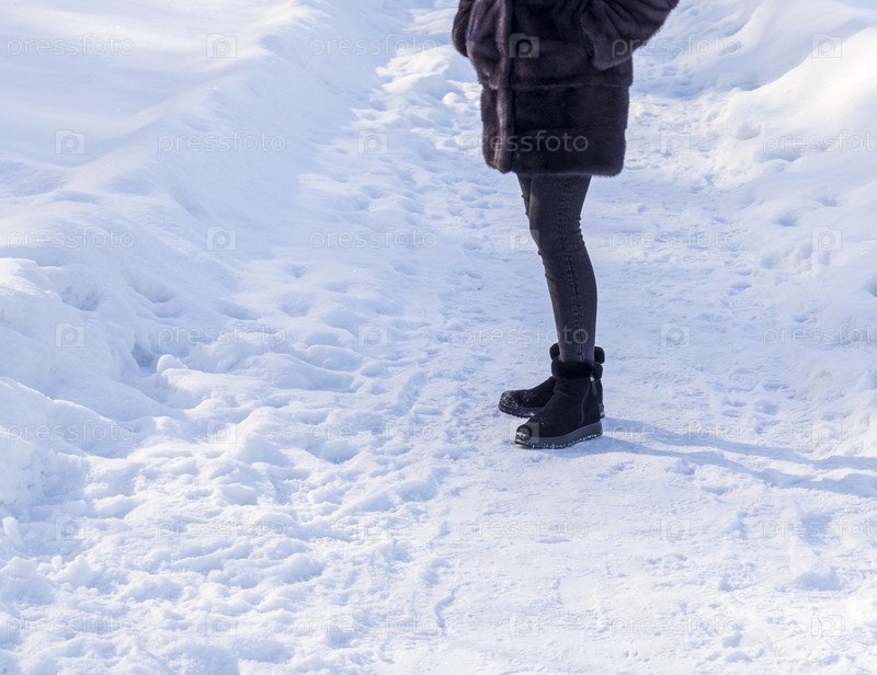 Женщина в черных ботинках, ходящая по снегу
