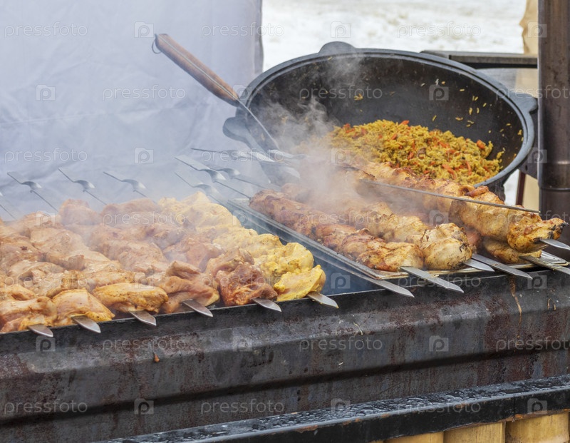 Шашлик - популярное блюдо из скошенного и жареного мяса, происходящее от кочевых групп на Кавказе и в Центральной Азии