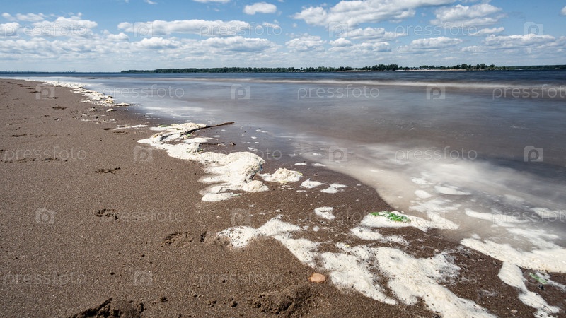 Песчаный берег Волги вдоль набережной