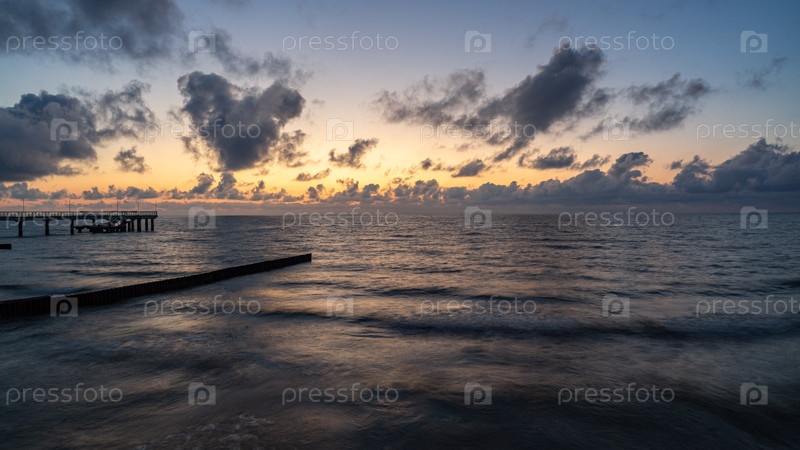 Панорама Балтийского моря в пригороде Зеленоградска на закате