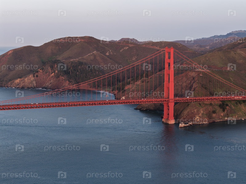 Мост Золотые Ворота над Тихим океаном в Сан-Франциско, штат Калифорния при закате солнца