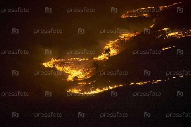 Пожар в горах в ночное время