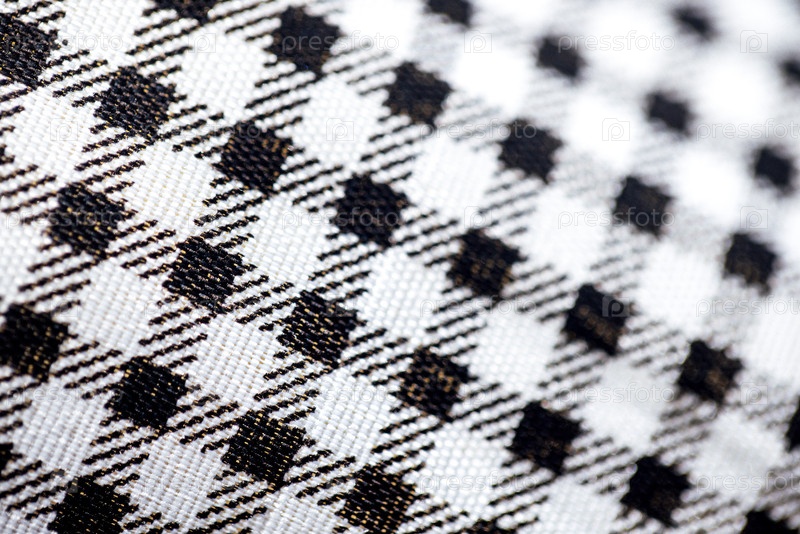 Текстура черно-белой чемоданчатой ткани с классическим колодным узором, демонстрирующей сложные детали плетения и контрастные цвета в ближайшем просмотре