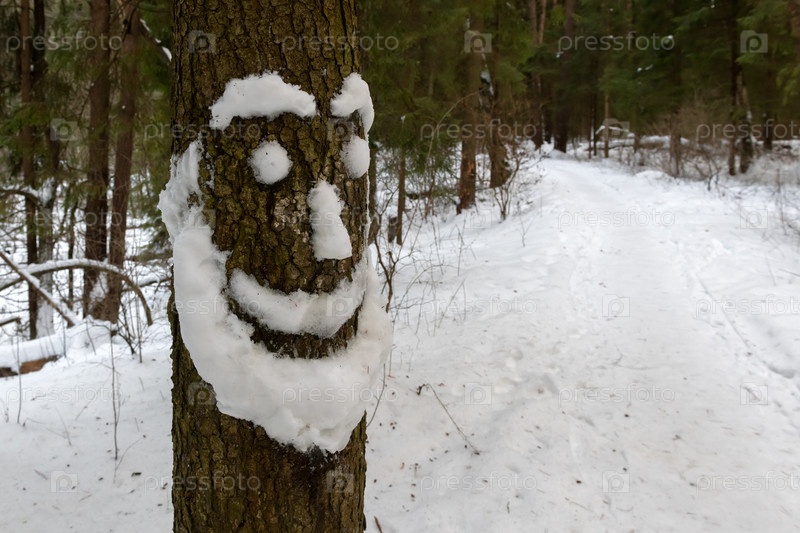 Лицо владельца леса сформировано из снега на дереве в зимнем лесу