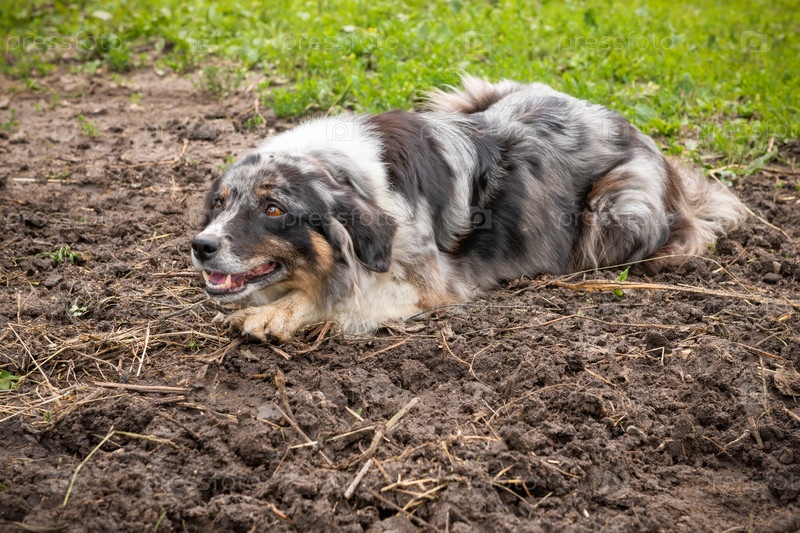 Собака Border Collie на ферме в летний день A