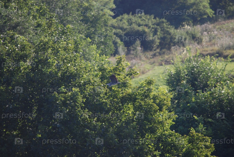 Птица сидит на ветвях деревьев
