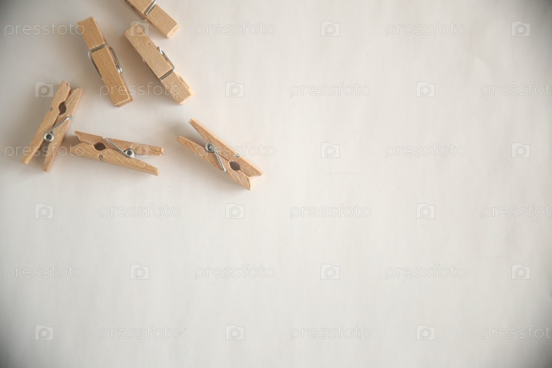 Предмет прищепки для белья и одежды на белом фоне. Мелкие бытовые предметы для дома