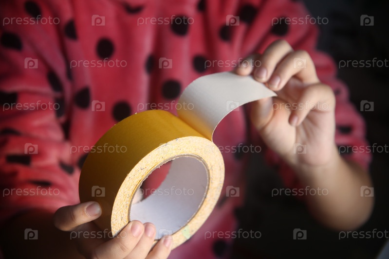 Девочка делает школьную поделку из скотча. Урок труда. Школа и образование