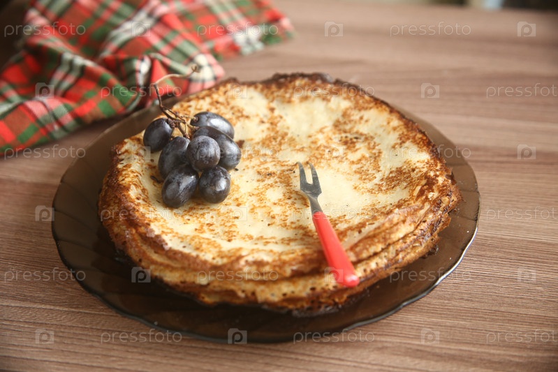 Румяные блины с синим виноградом. Праздник масленица