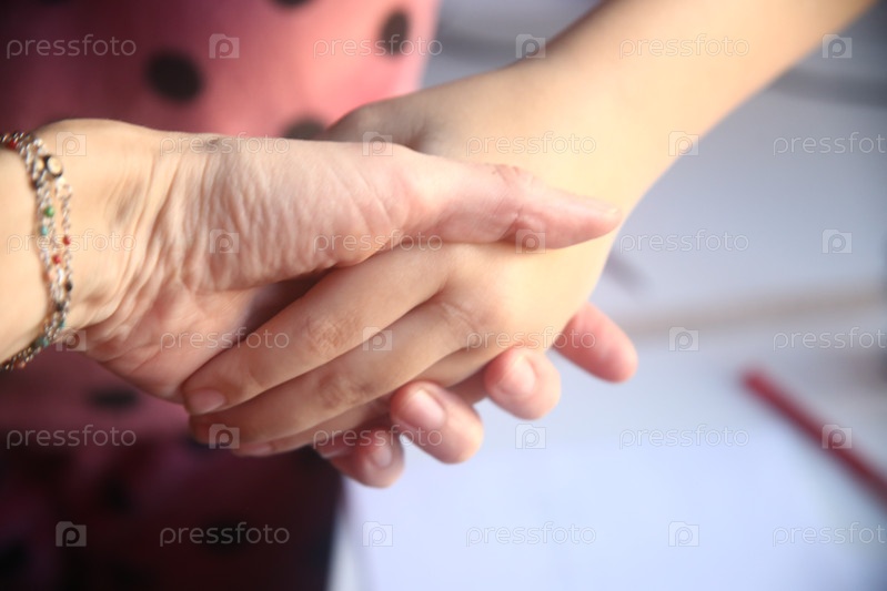 Взрослый человек держит руку подростка. Рукопожатие. Форма приветствия. Концепция дружественных связей
