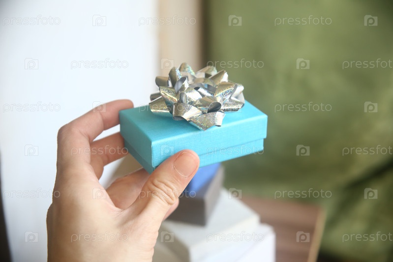 Женская рука держит подарочную красную коробку в руке. Международный женский день