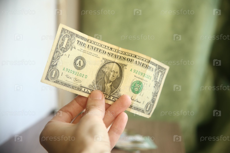Рука держит банкноту один доллар над столом. Покупка валюты. Денежный оборот. Концепция экономии и бюджета