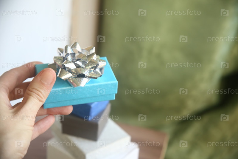 Женская рука держит подарочную коробку в руке. Подарок женщине. Международный женский день
