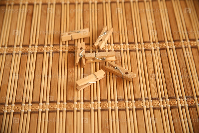 Предмет прищепки для белья и одежды на столе. Мелкие бытовые предметы для дома