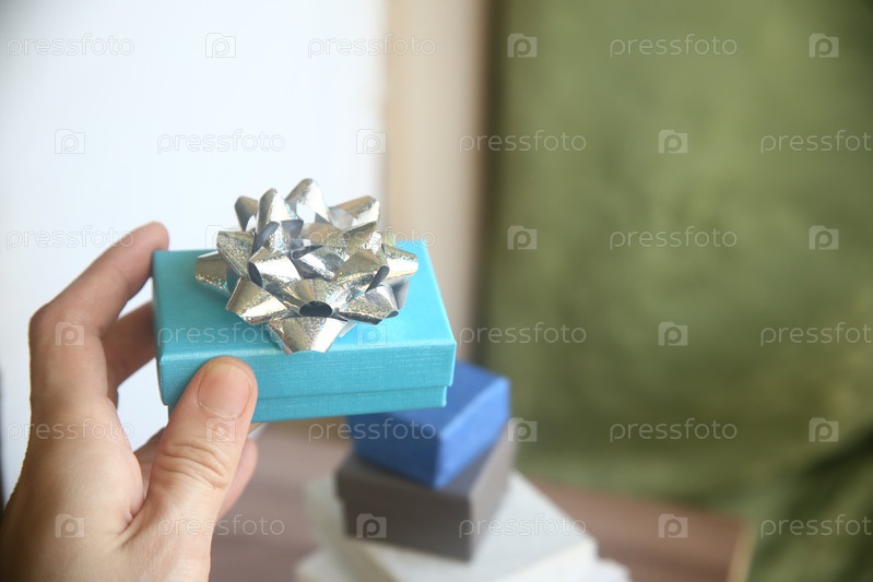 Женская рука держит подарочную красную коробку в руке. Международный женский день