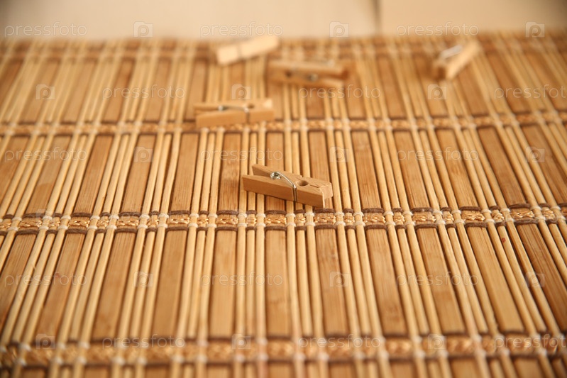 Предмет прищепки для белья и одежды на столе. Мелкие бытовые предметы для дома