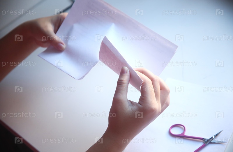 Девочка подросток делает школьную поделку из бумаги. Урок труда. Школа и образование