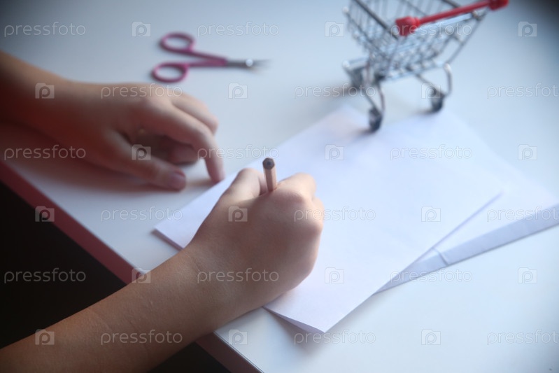 Девочка школьница пишет карандашом на бумаге. Школа и образование