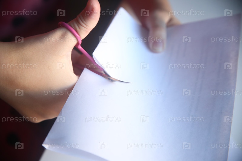 Девочка делает школьную поделку из бумаги. Урок труда. Школа и образование