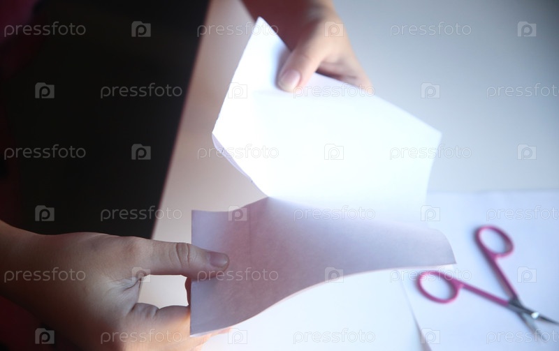 Девочка школьница делает школьную поделку из бумаги. Урок труда. Школа и образование