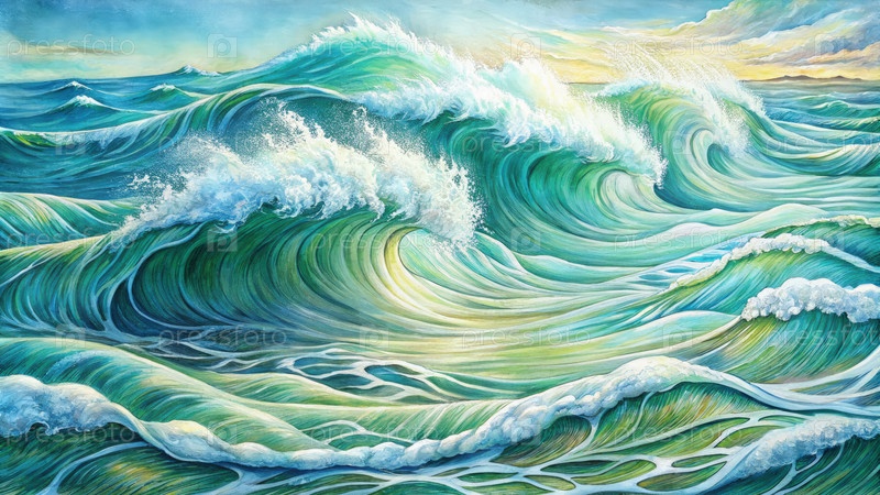 Живая живопись бирюзовых волн, разбивающихся в океане