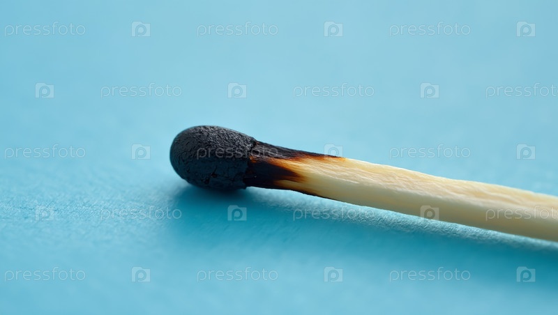 Одинокая сгоревшая спичка на пастельно-синем фоне