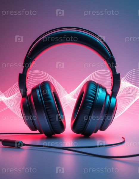 Профессиональные наушники для музыкантов на пастельном фоне, музыкальная обложка