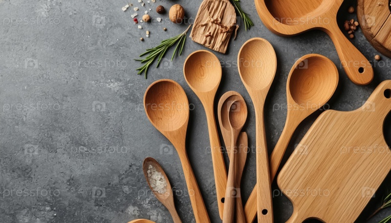 Деревянные столовые приборы - ложки и вилки на темном фоне