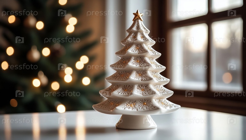 Минималистская керамическая елка на розовом фоне
