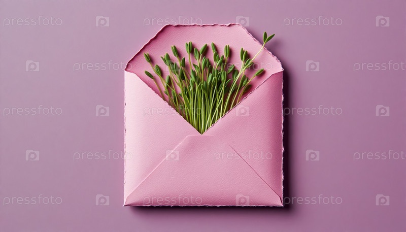 Бумажный конверт с микрозелеными оттенками на розовом